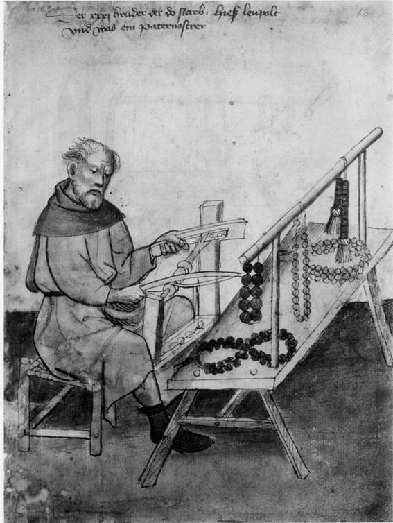 Miniaturё: Artizan qё fabrikon rruzare, Hausbuch, Stadbibliotheck i Norimberga