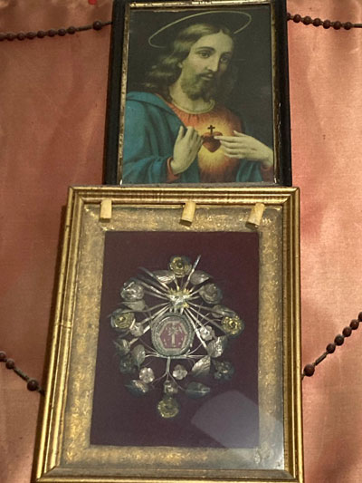 a destra: la medaglietta che mi portò quel giorno mia nonna dalla Chiesa, come un mandato.